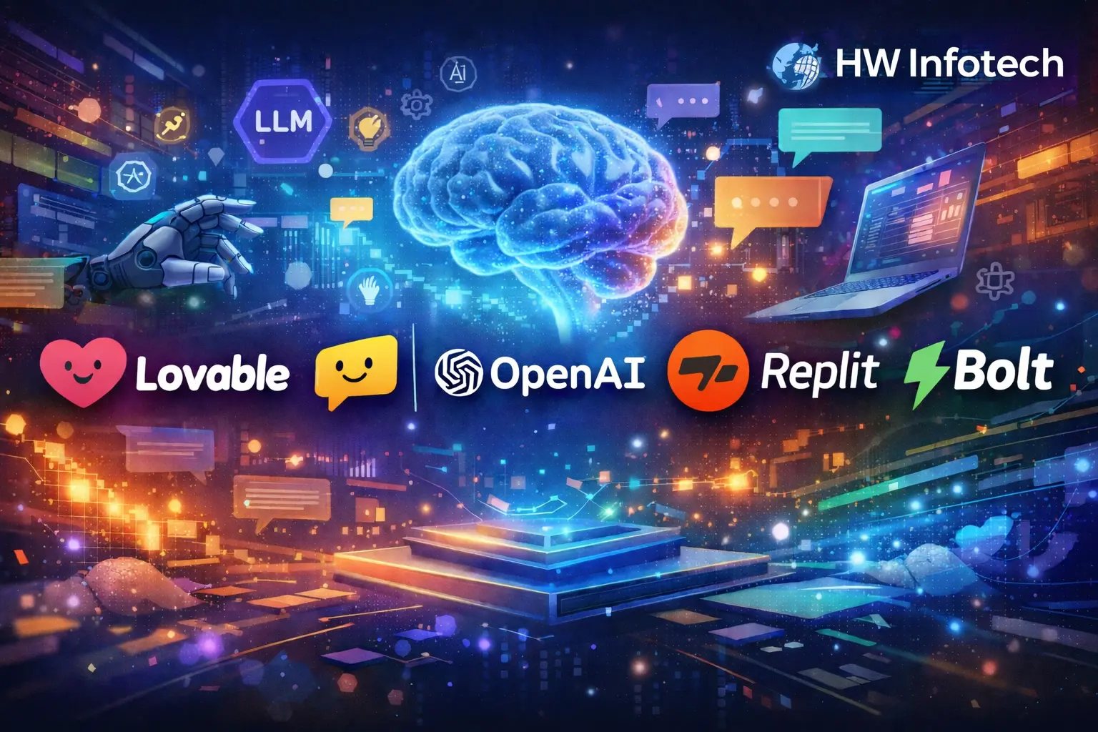 Harness the power of leading Large Language Model (LLM) platforms including OpenAI, Claude AI, Lovable, Replit, and Bolt to build intelligent, scalable, and future-ready AI applications.
